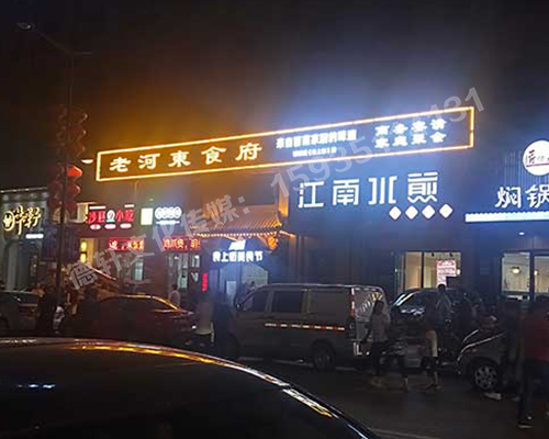 名稱(chēng):老河東食府-服裝城門(mén)頭發(fā)光字、沖孔字