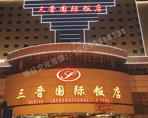 三晉國際酒店飯店 ——正門(mén)頭 吸塑面 不銹鋼鈦金包邊字                                                三晉國際酒店飯店 ——正門(mén)頭 吸塑面 不銹鋼鈦金包邊字